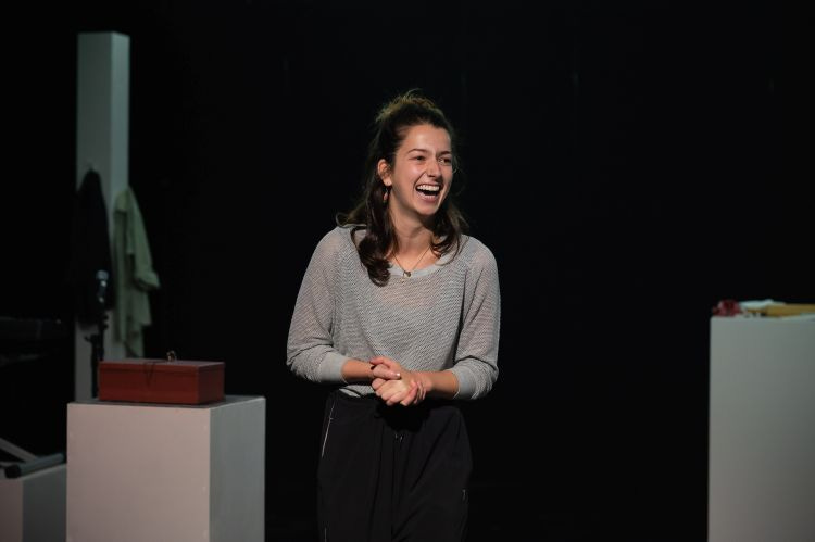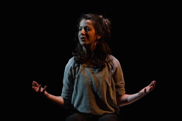 Cette esthétique brute et perméable crée une proximité immédiate avec le public. Avant même que la pièce ne commence, Amrouche s’adresse à la salle, explique la démarche, rassure, avertit : on peut sortir, respirer. Les traumavertissements sont faits avec une tendresse ironique - post-2020 oblige - et participent de ce climat de care qui traverse tout le spectacle. On ne veut pas heurter, on veut ouvrir. L’actrice interagit souvent avec le public, feint des pauses pour arrêter la pièce et permettre au public de se replonger dans son téléphone. On rappelle que « c’est juste du théâtre », et cette mise à distance, paradoxalement, rend l’expérience plus intime.